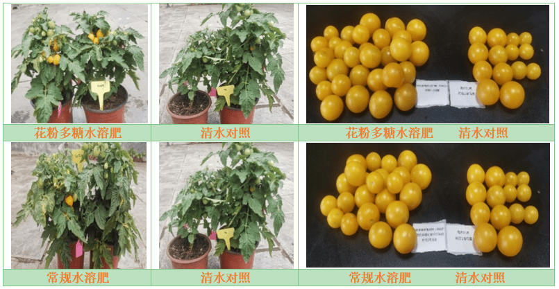 (2)在設施大棚中,采用花粉多糖制劑產品灌根大棚番茄,7.5kg/公頃可顯著提升番茄風味,提高Vc含量20.3%,增加采摘率4.9%。